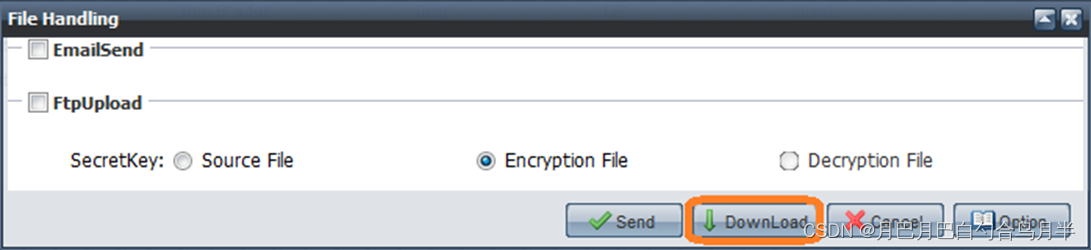 选择下载文件的类型,勾选Source File表示按源文件进行下载,勾选Encryption File表示将源文件加密以后再下载,用户可以根据自己需要选择不同方式进行选择,然后点击”Down Load”按钮,即可进行下载,如下图所示: