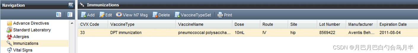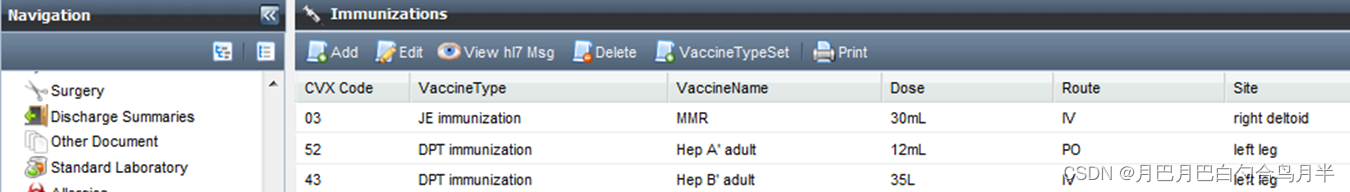 - 医生d004退出后,重新登录,进入该病人的patient chart,查看其Immunizations界面,显示如下图所示: