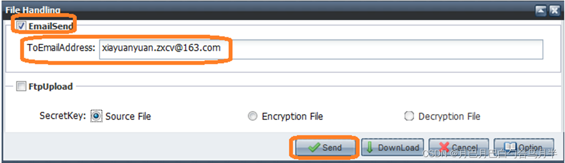 若用户想通过邮件接收Immunization,需勾选Email Send,并在ToEmailAddress字段输入用户自己的邮箱地址,同时选择发送文件类型(Source File表示按源文件进行发送,Encryption File表示将源文件加密以后再发送),然后点击Send按钮,即可发送邮件