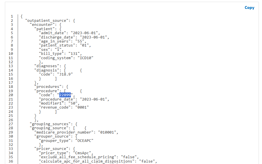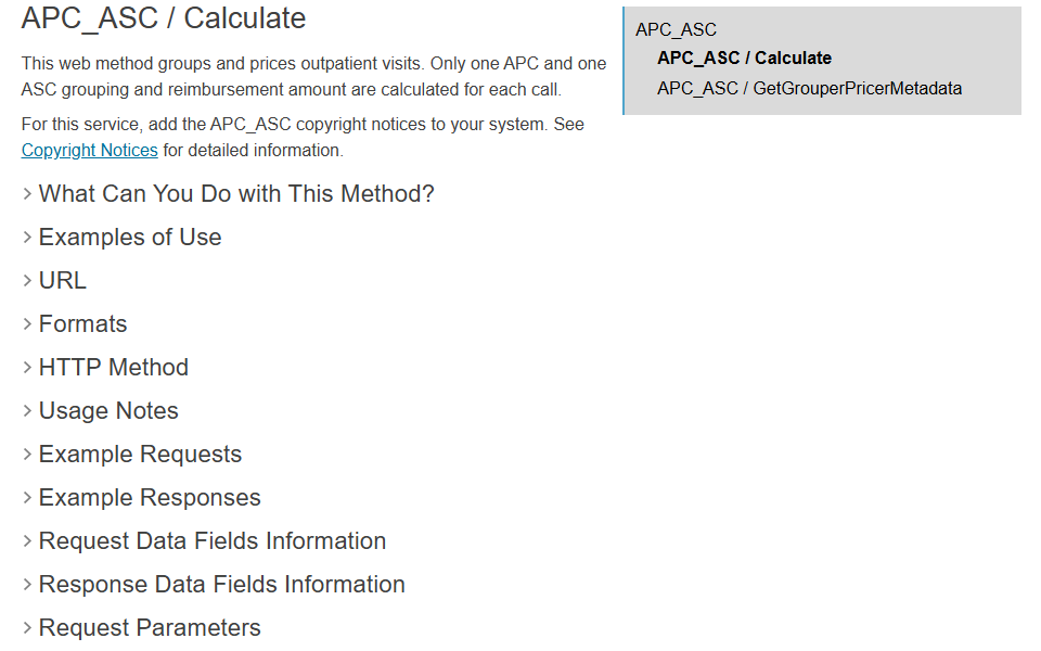 This web method groups and prices outpatient visits. Only one APC and one ASC grouping and reimbursement amount are calculated for each call.