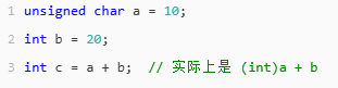 在编译器眼中,等价于: int c = (int)a + b;