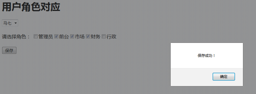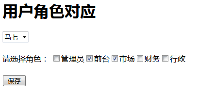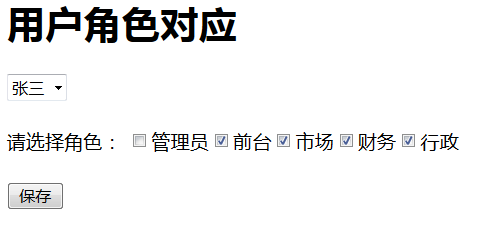 4.这样,再考虑怎么让数据库中用户本有的角色显示出来,那就是要用到下拉列表和复选框的值了