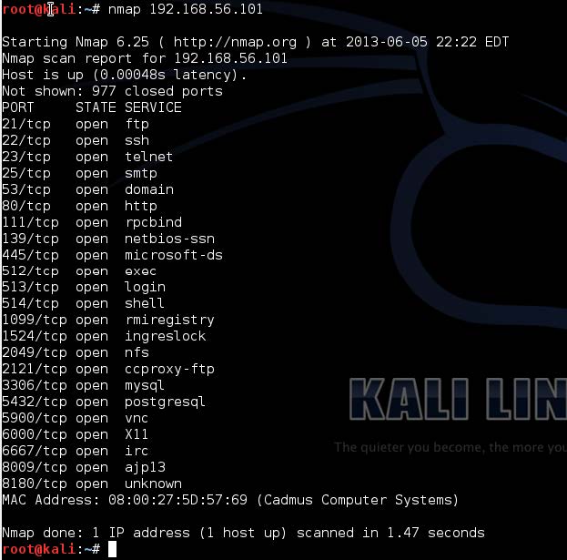 在了解目标网络范围和活动主机之后,我们需要执行端口扫描操作来检索开放的TCP和UDP端口和接入点。