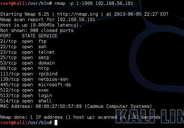 我们也可以显式指定要扫描的端口(这里我们指定了1000个端口):