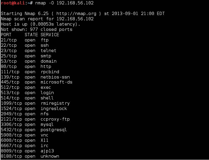 -O命令来开启OS检测功能:nmap -O 192.168.56.102