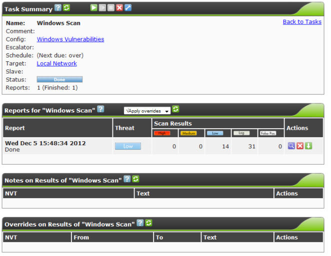 一旦执行了扫描,你可以通过查看报告来观察结果: