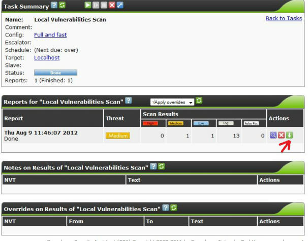Network Vulnerabilities Scan旁边的放大镜图标:点击下载箭头来查看报告:
