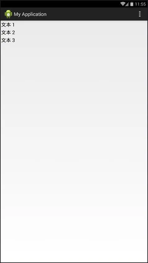 <TextView android:textAppearance="?android:textAppearanceMedium" android:id="@id/textView" android:layout_width="wrap_content" android:layout_height="wrap_content" android:layout_margin="2.0dip" android:text=" " />