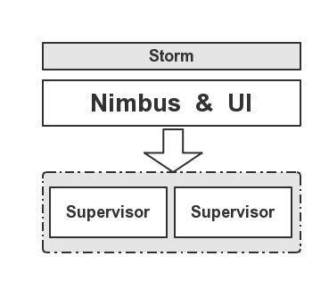 Storm集群由一个主节点和多个工作节点组成。主节点运行了一个名为“Nimbus”的守护进程,用于分配代码、布置任务及故障检测。每个工作节 点都运行了一个名为“Supervisor”的守护进程,用于监听工作,开始并终止工作进程。Nimbus和Supervisor都能快速失败,而且是无 状态的,这样一来它们就变得十分健壮,两者的协调工作是由Apache的ZooKeeper来完成的。