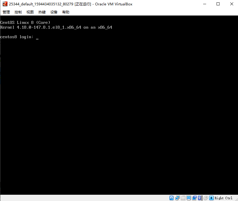 这时候再次去看VirtualBox管理器,就有一个新的centos8的虚拟机了