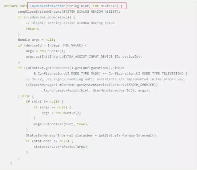 自己实现常按Home 键吊起Google Now方法,供在按键分发处理事件时候调用。