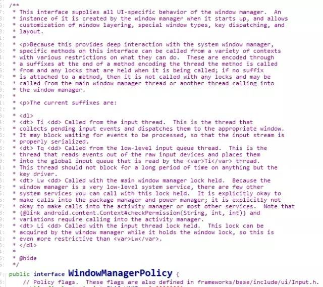 alps\frameworks\base\core\java\android\view\WindowManagerPolicy.java