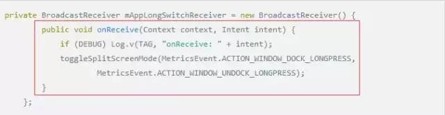 自定义接收广播后,onReceive处理事件实现分屏方法如下: