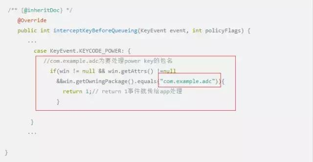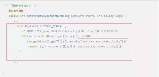 在PhoneWindowManager 中修改interceptKeyBeforeQueueing方法实现让特定的APP拿到Power key 值