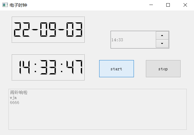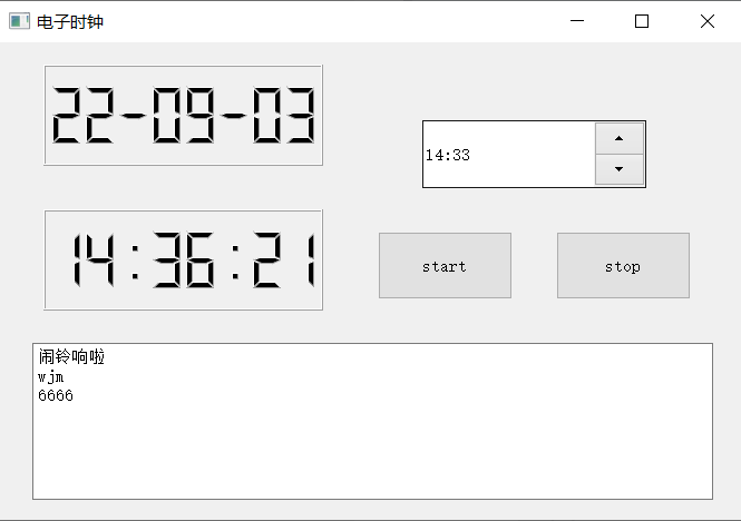 该博客介绍了一个使用QT框架实现的电子时钟应用,具有定时播报功能。用户可以设定闹钟时间并输入播报文本,当到达设定时间时,应用会循环播报输入的文本内容。点击开始按钮启动闹钟和播报,而停止按钮则用于取消闹钟和播报。