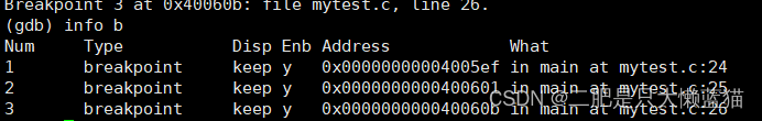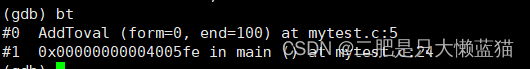当我们进入一个函数后(这里依然使用24行的函数,也就是第一个断点的函数进行举例),想要查看main函数的栈堆情况,可以使用指令bt