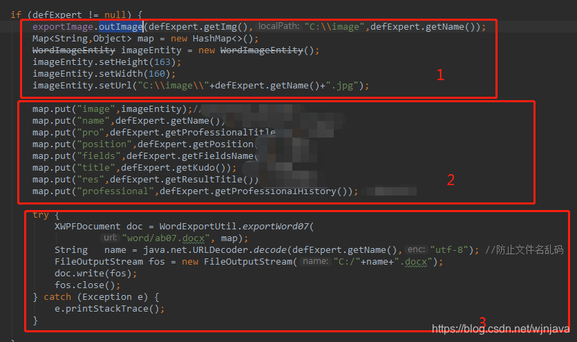 传入的是defExpert对象,对象中的属性赋值给word文档上