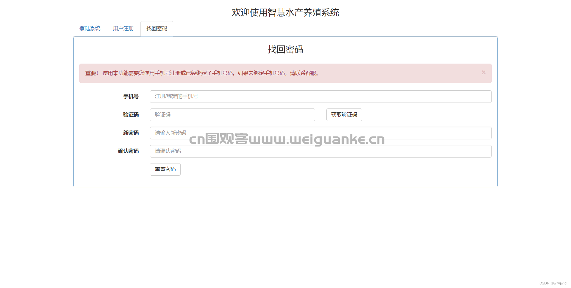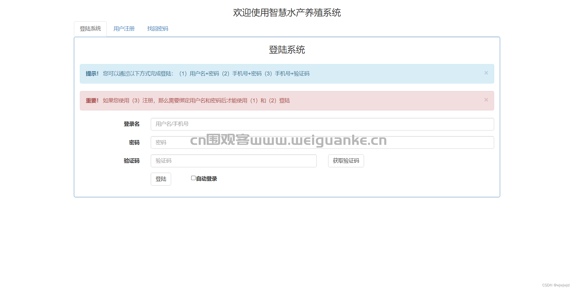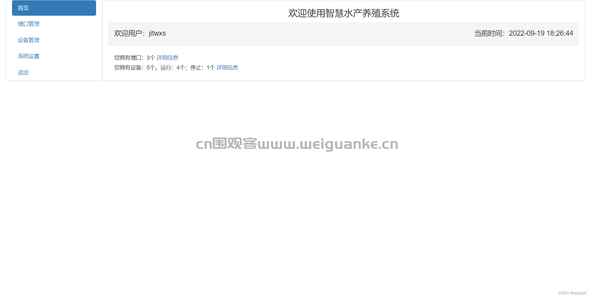本文分享一个Java EE JSP智慧水产养殖系统Spring Boot项目,供初学者参考。系统有供应商和用户2种权限,供应商可进行商品和订单管理等,用户能管理塘口和设备等。还给出了系统运行的登录地址、账号密码及项目截图。