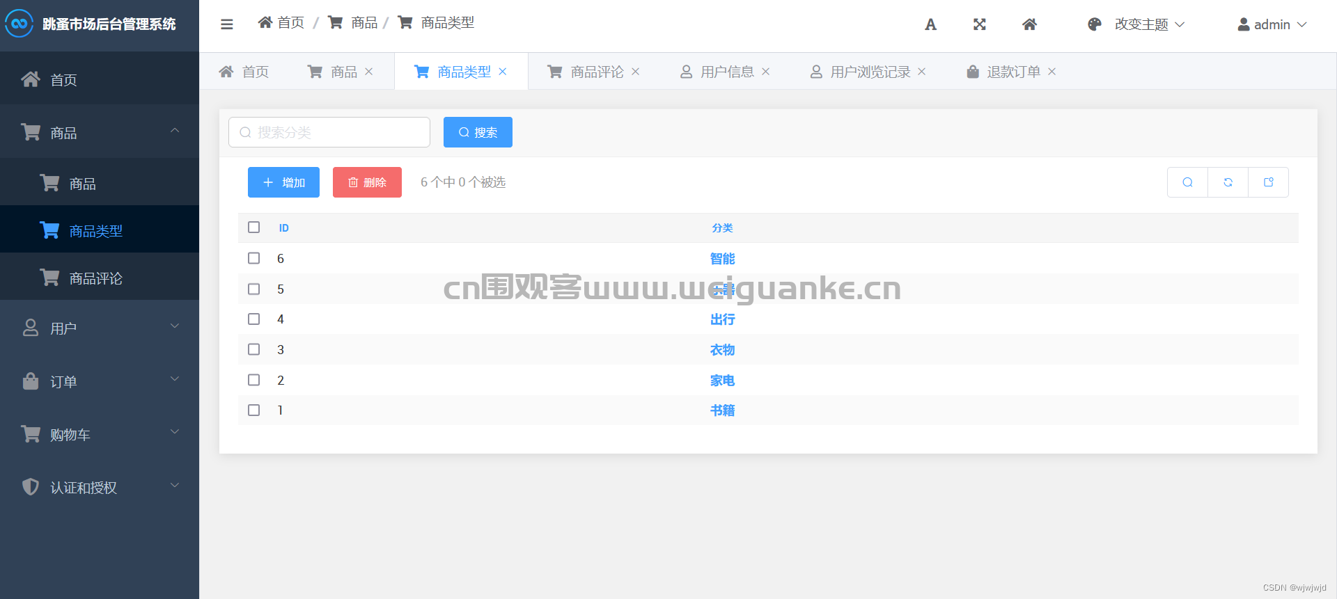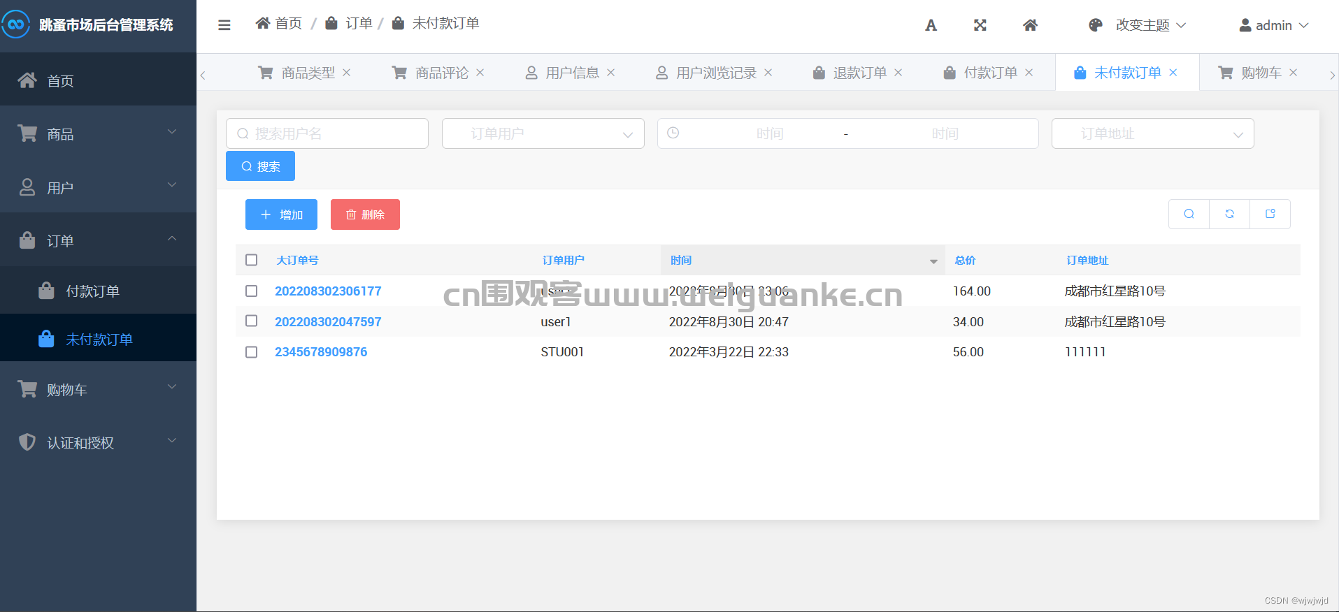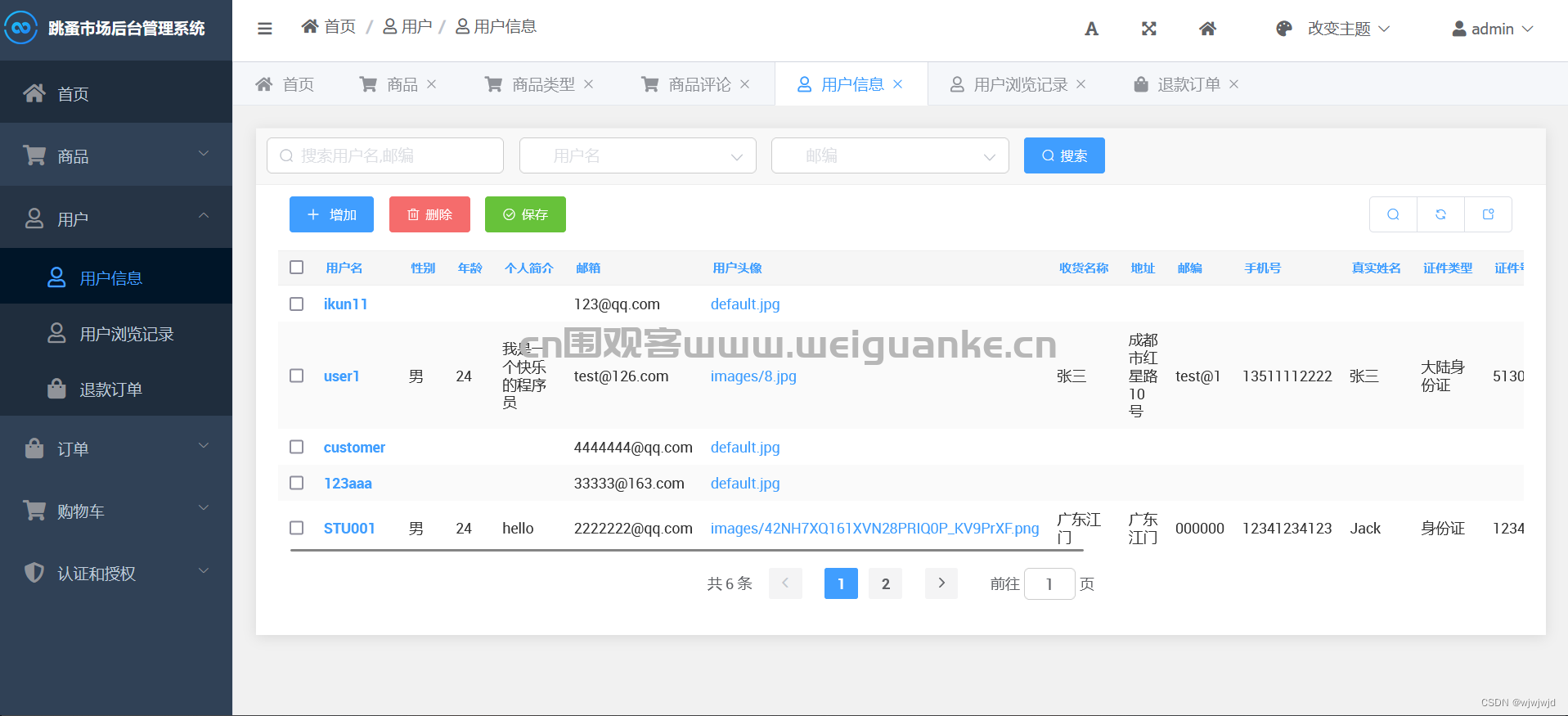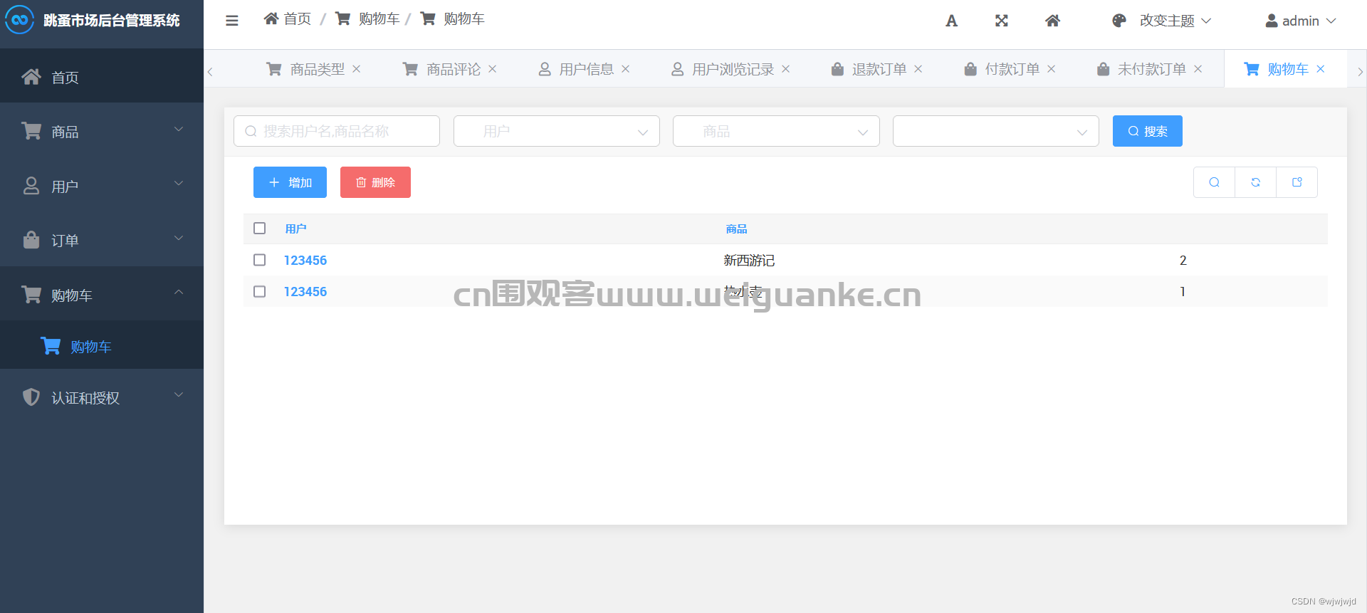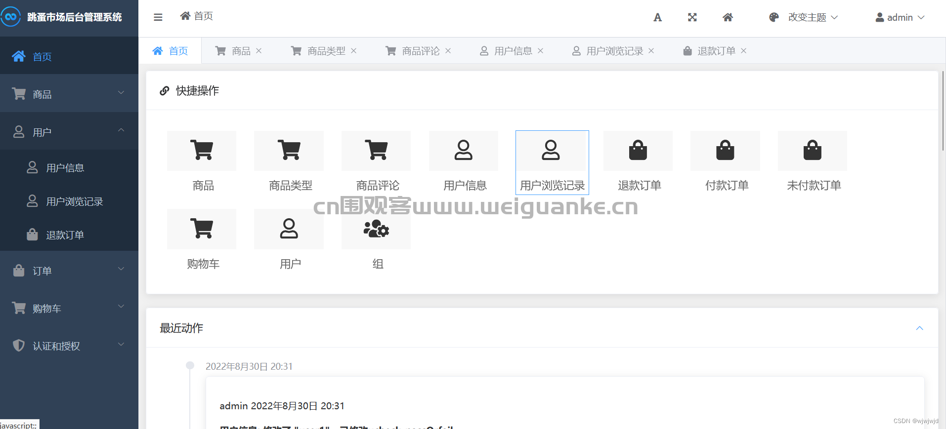 后台管理:支持后台管理功能,商品及用户信息的增加,更新与删除,可自定制样式与功能,日志,以及权限的管理和分配。