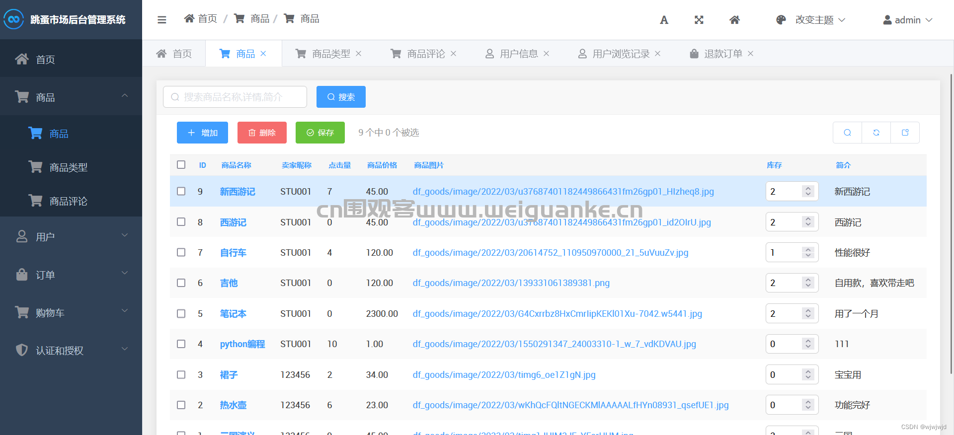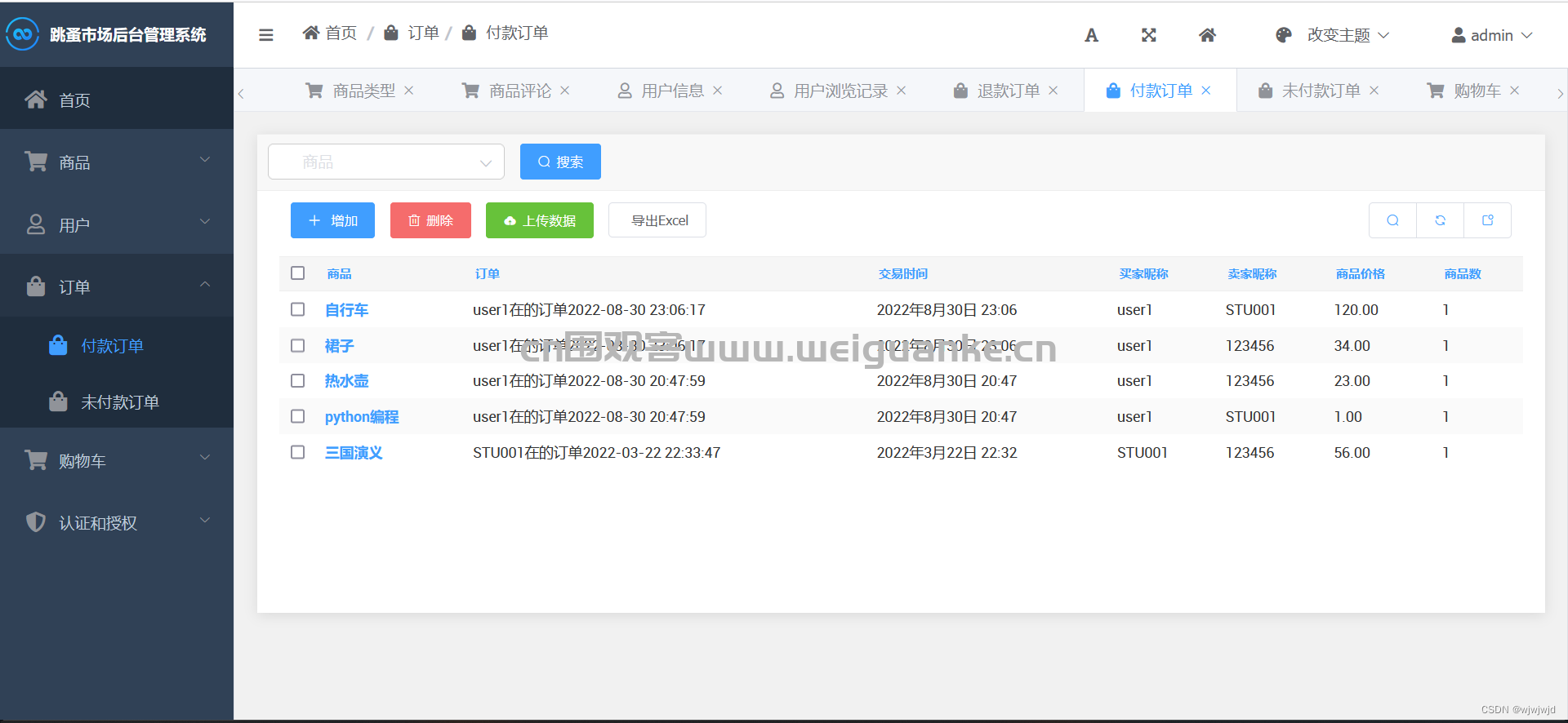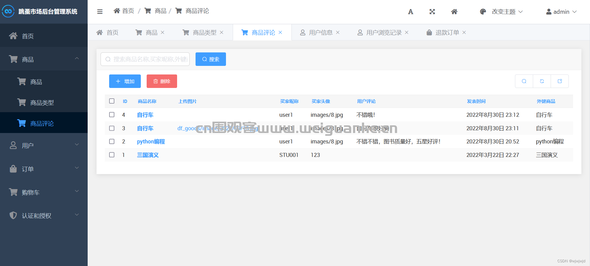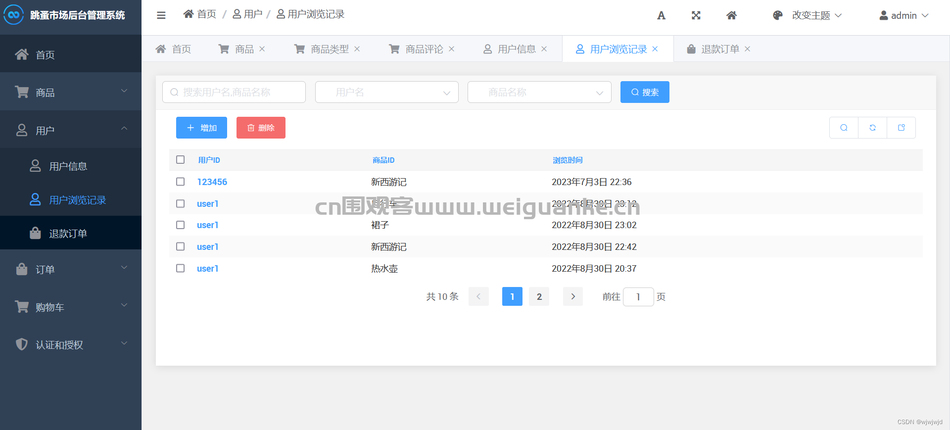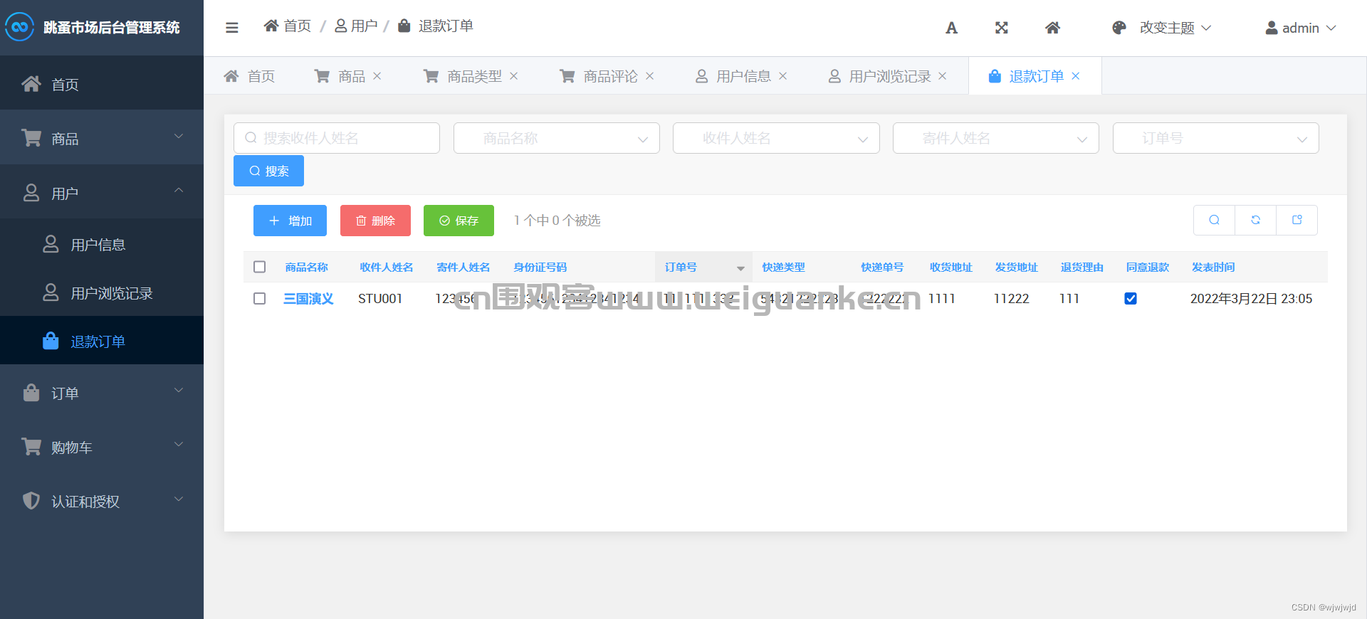 后台管理:支持后台管理功能,商品及用户信息的增加,更新与删除,可自定制样式与功能,日志,以及权限的管理和分配。
