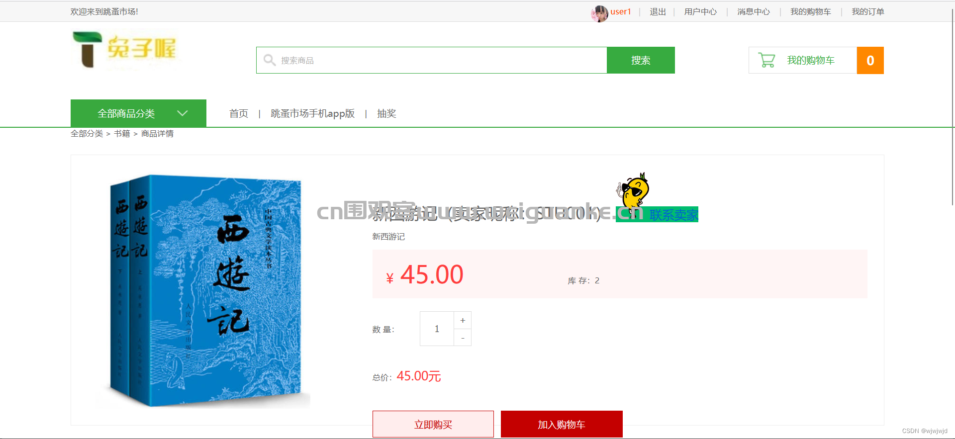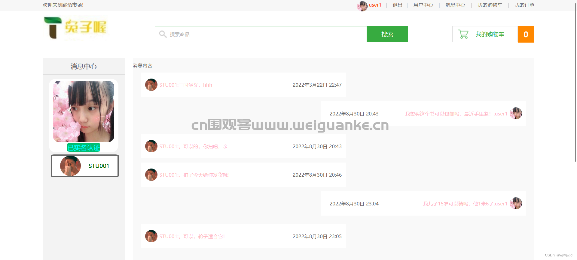 消息中心:支持用户和卖家互相发信息进行在线交流。