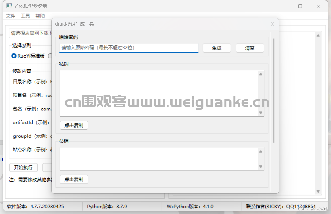 4. druid秘钥生成:工具可以一键生成druid连接的秘钥。