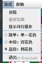游戏(开局、重新发牌、显示可行操作、简单/中级/高级、退出)