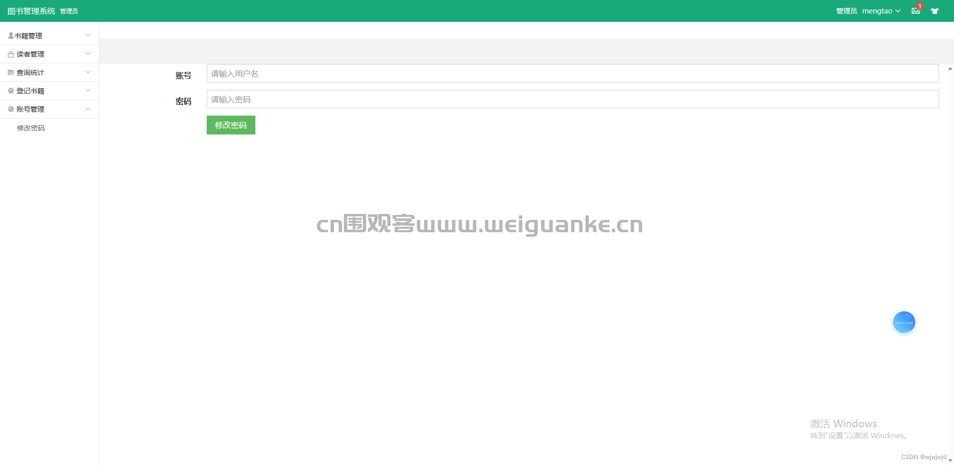 7.账号管理:修改密码(账号,密码,修改密码)、退出