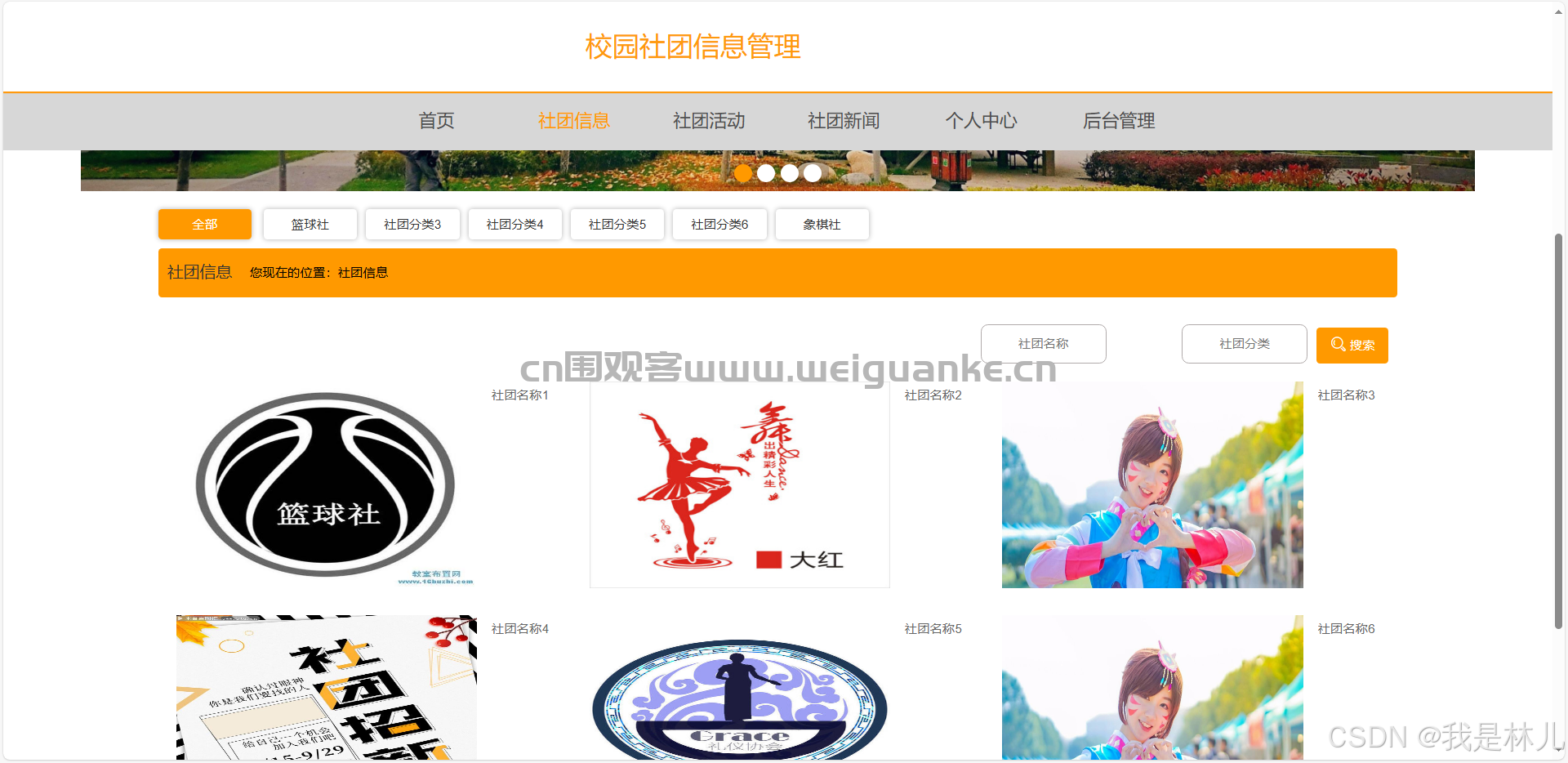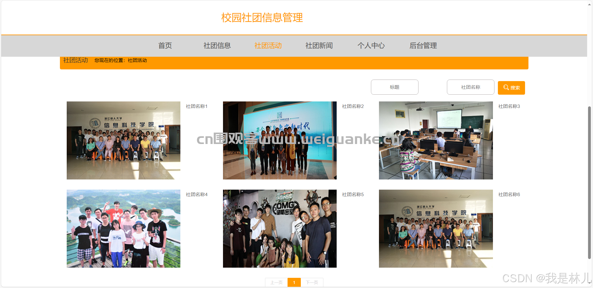 首页:首页展示社团的最新活动、新闻和轮播图。