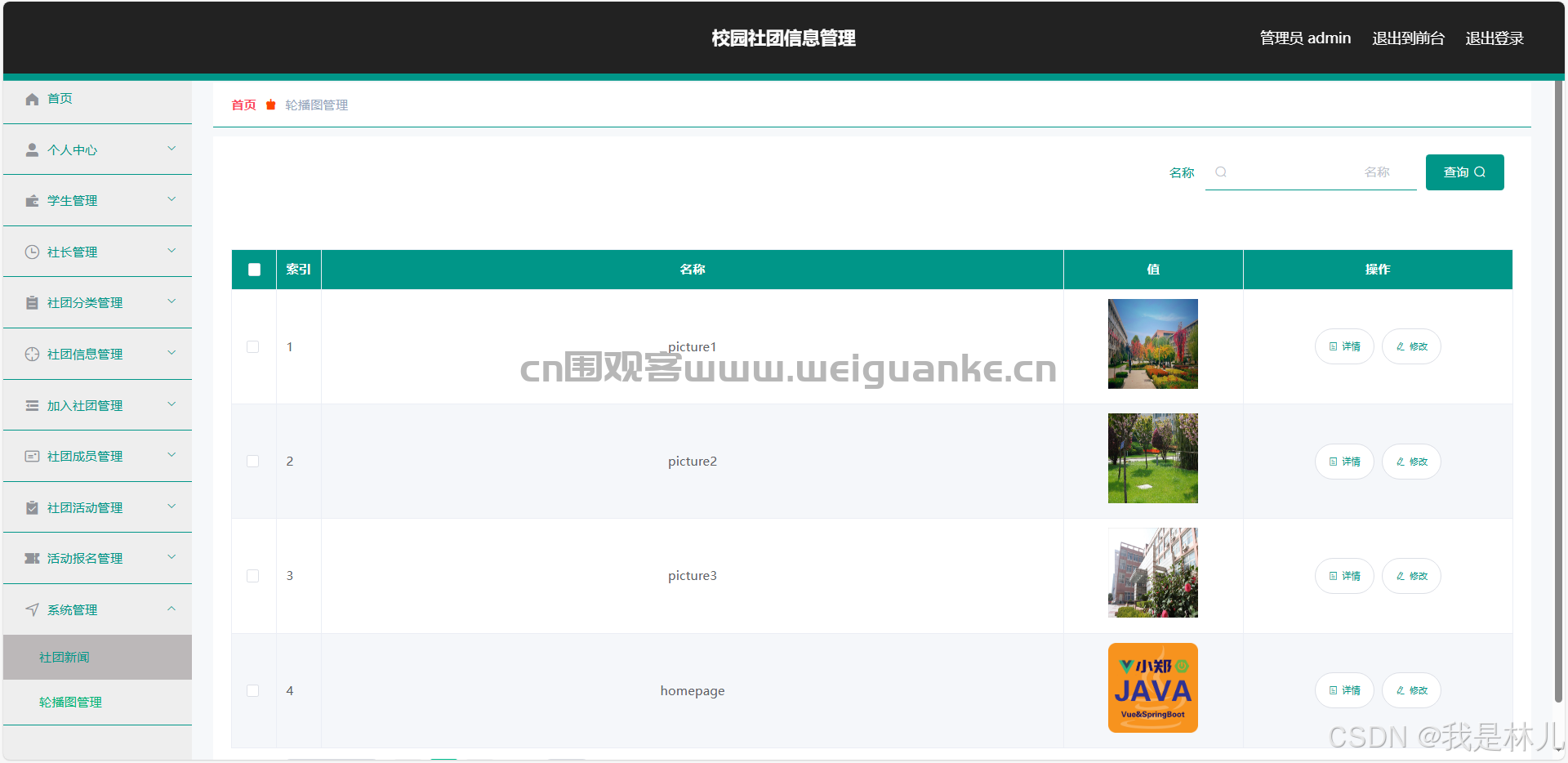 轮播图管理:管理员可以编辑和删除首页轮播图。