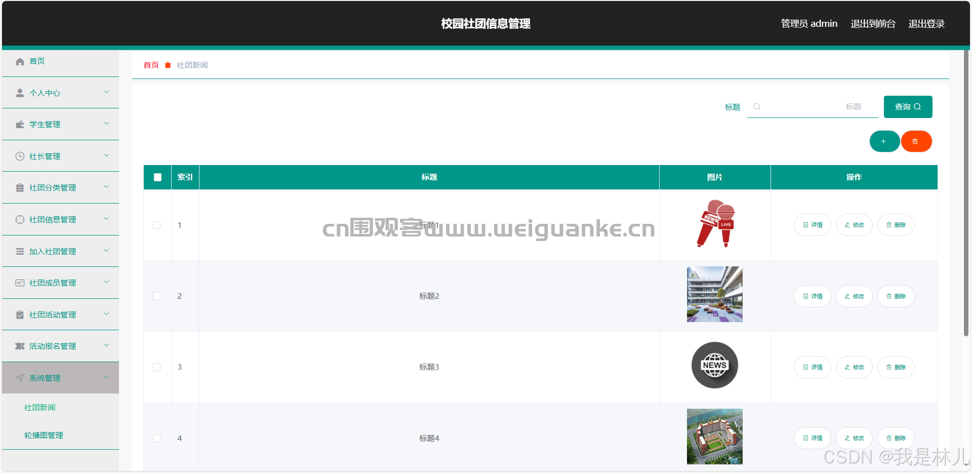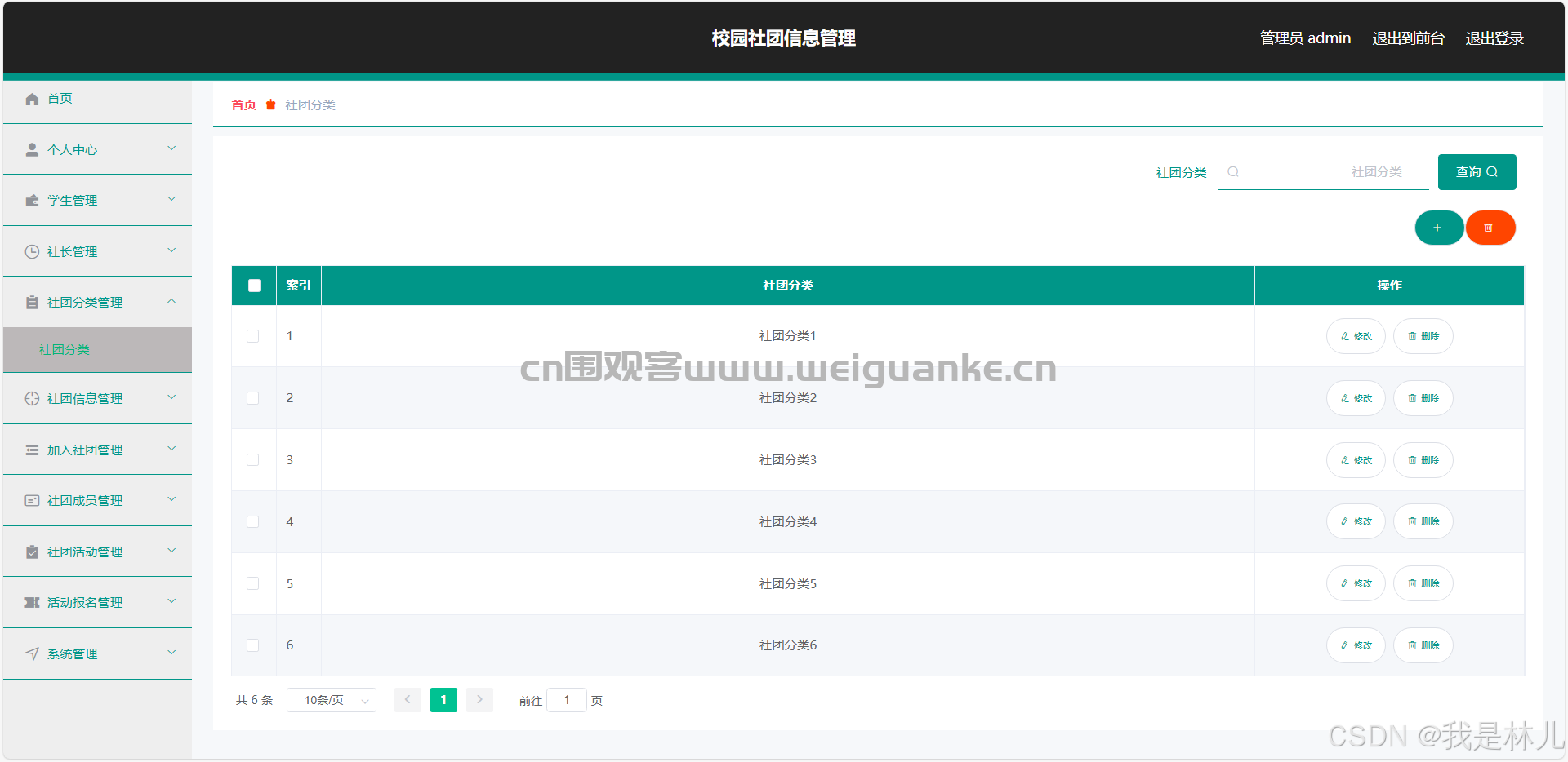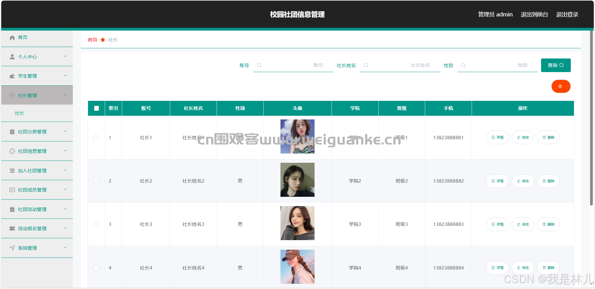 社团成员:管理员可以查看和管理社团成员信息。可以删除社团成员信息。