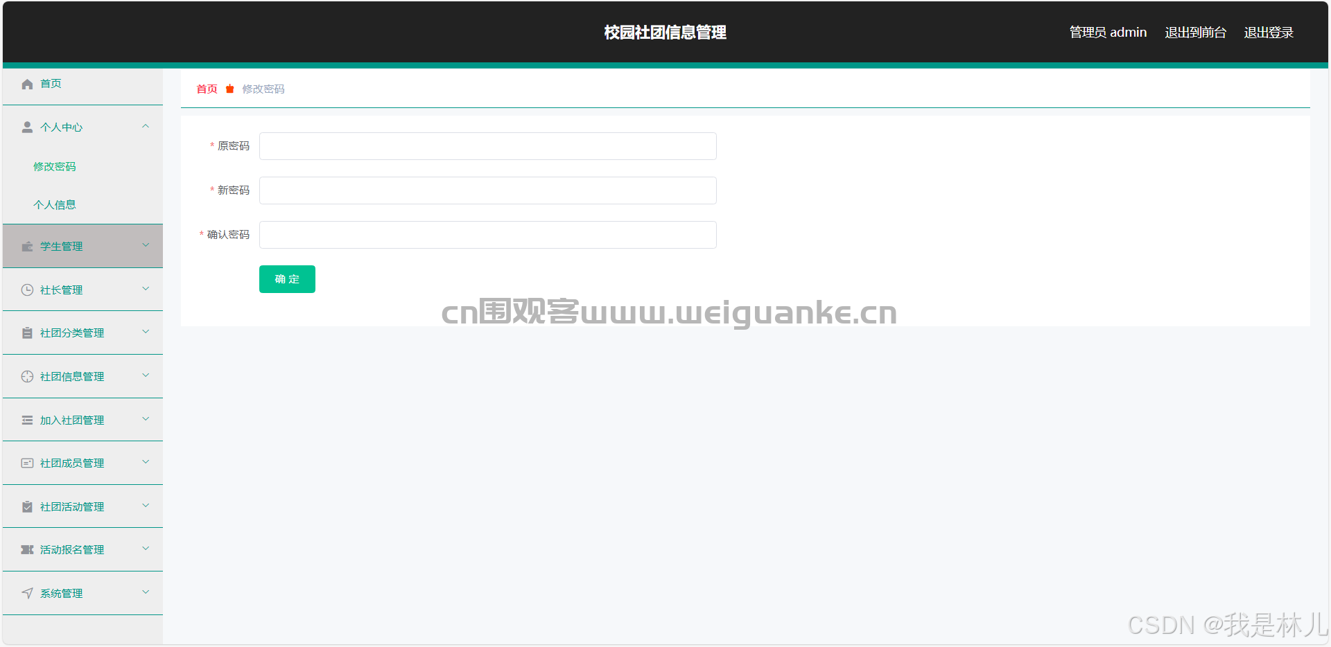 修改密码:管理员可以修改自己的登录密码,提高账户的安全性。修改密码时,系统会要求输入当前密码、新密码和确认新密码,确保输入的准确性。