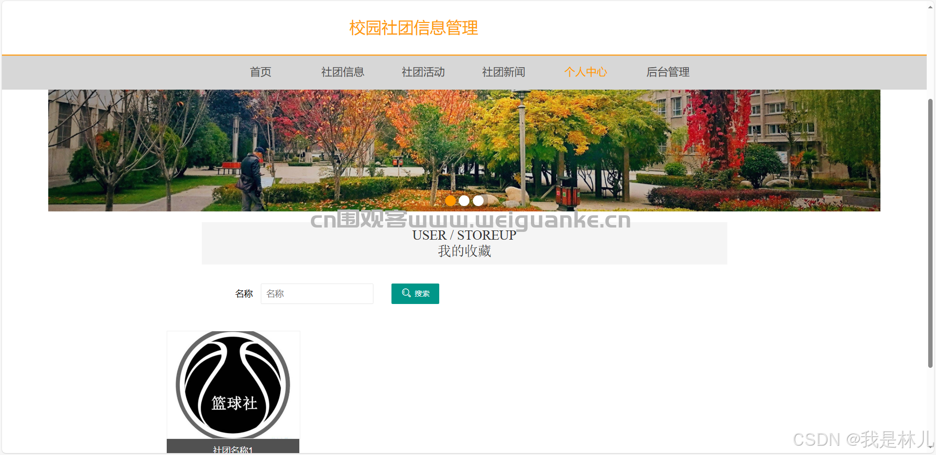 我的收藏:用户可以收藏感兴趣的社团和活动。