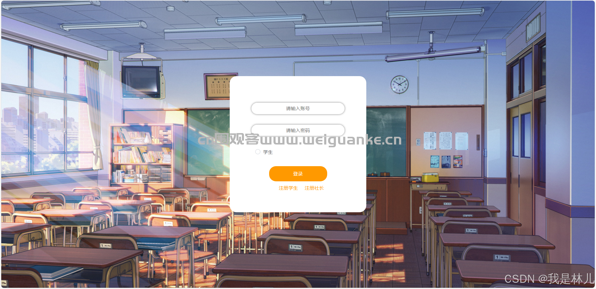 登录注册:社长可以通过输入用户名和密码进行登录,用户可以通过输入用户名和密码进行登录,或选择注册功能创建新账号。