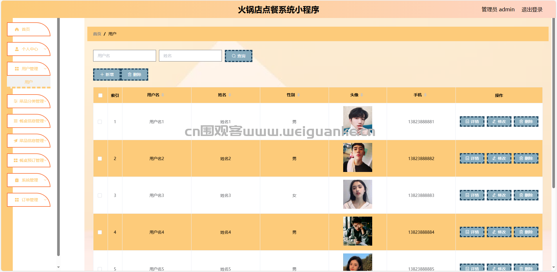 2.用户管理:查看、编辑、删除所有注册用户信息