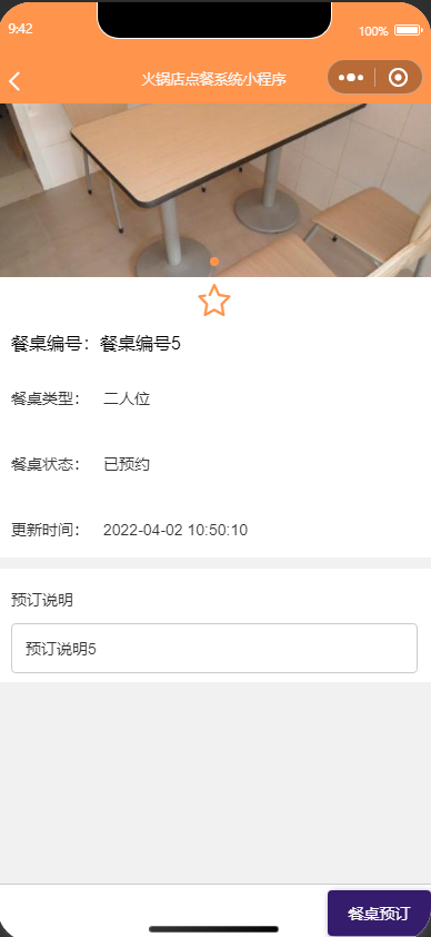 2. 餐桌信息:浏览餐桌信息,预订餐桌