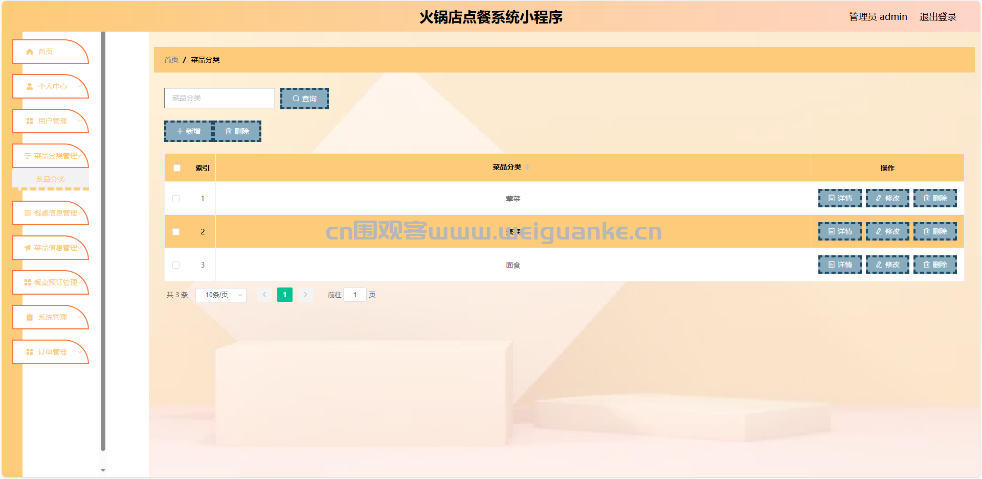 3. 菜品分类管理:添加、编辑、删除菜品分类信息
