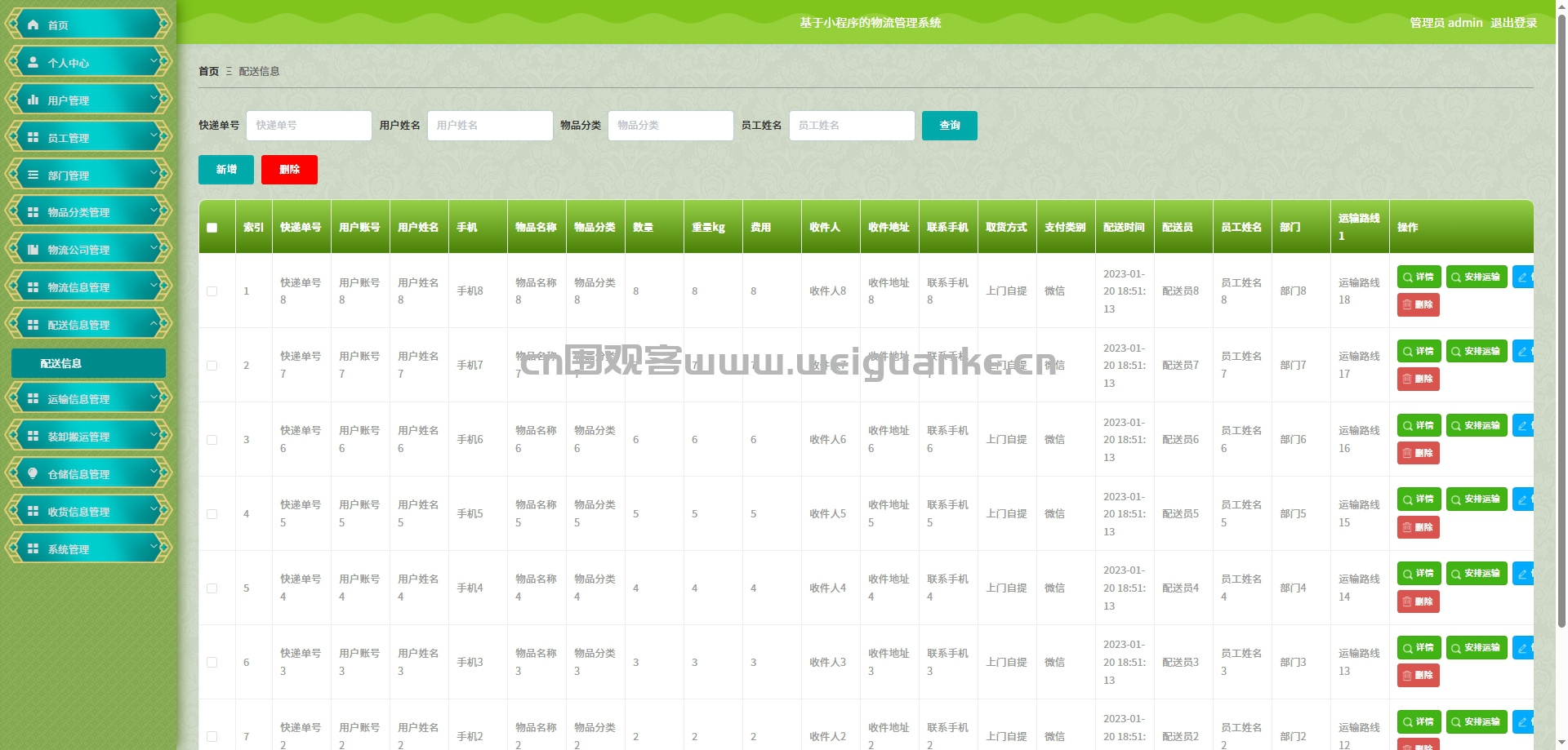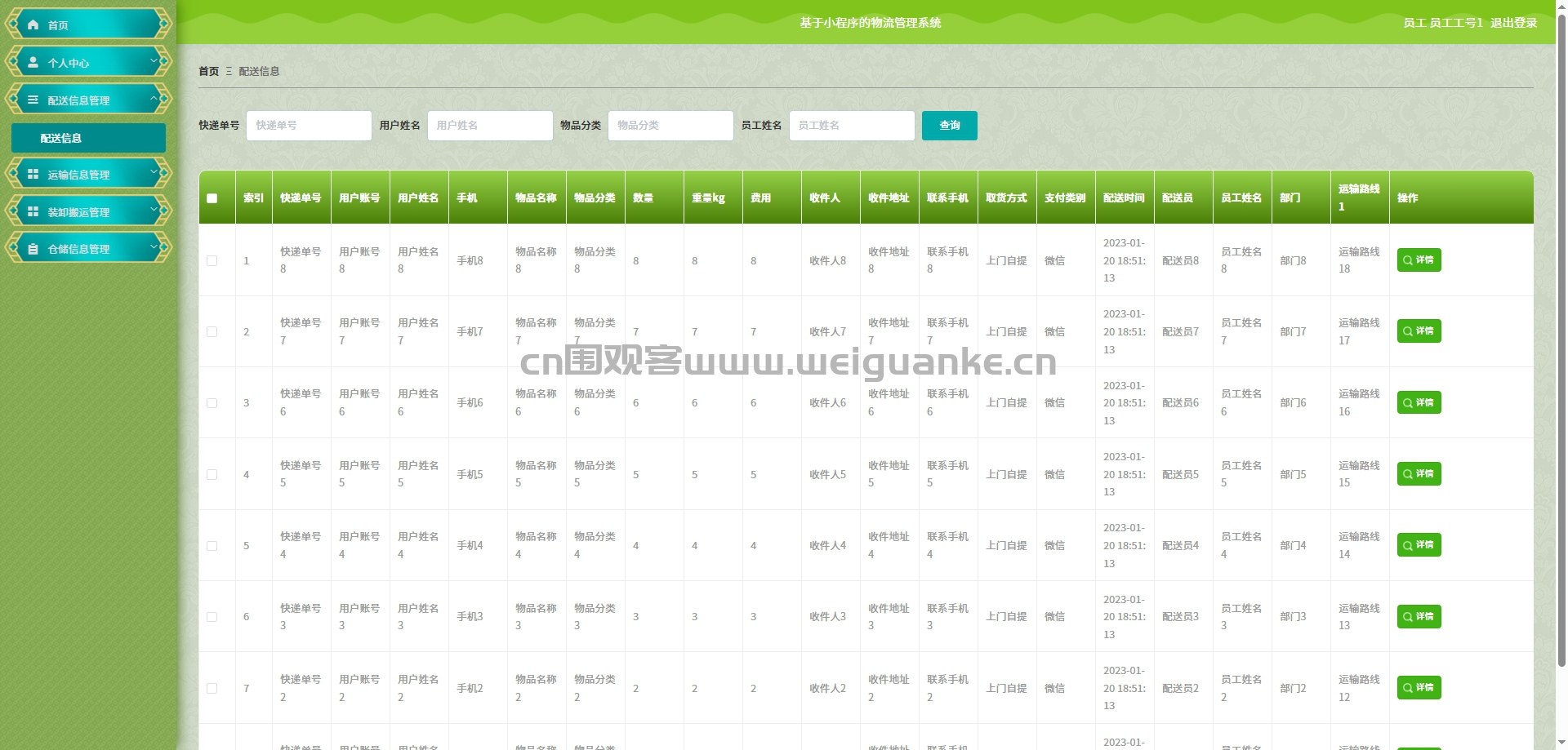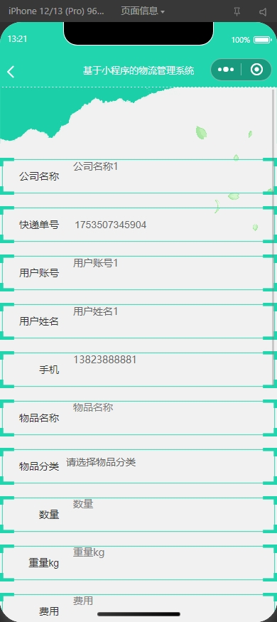 本项目是一个基于Spring Boot后端技术和小程序端技术构建的物流管理系统。该平台旨在为用户提供一个方便快捷的物流管理环境。
