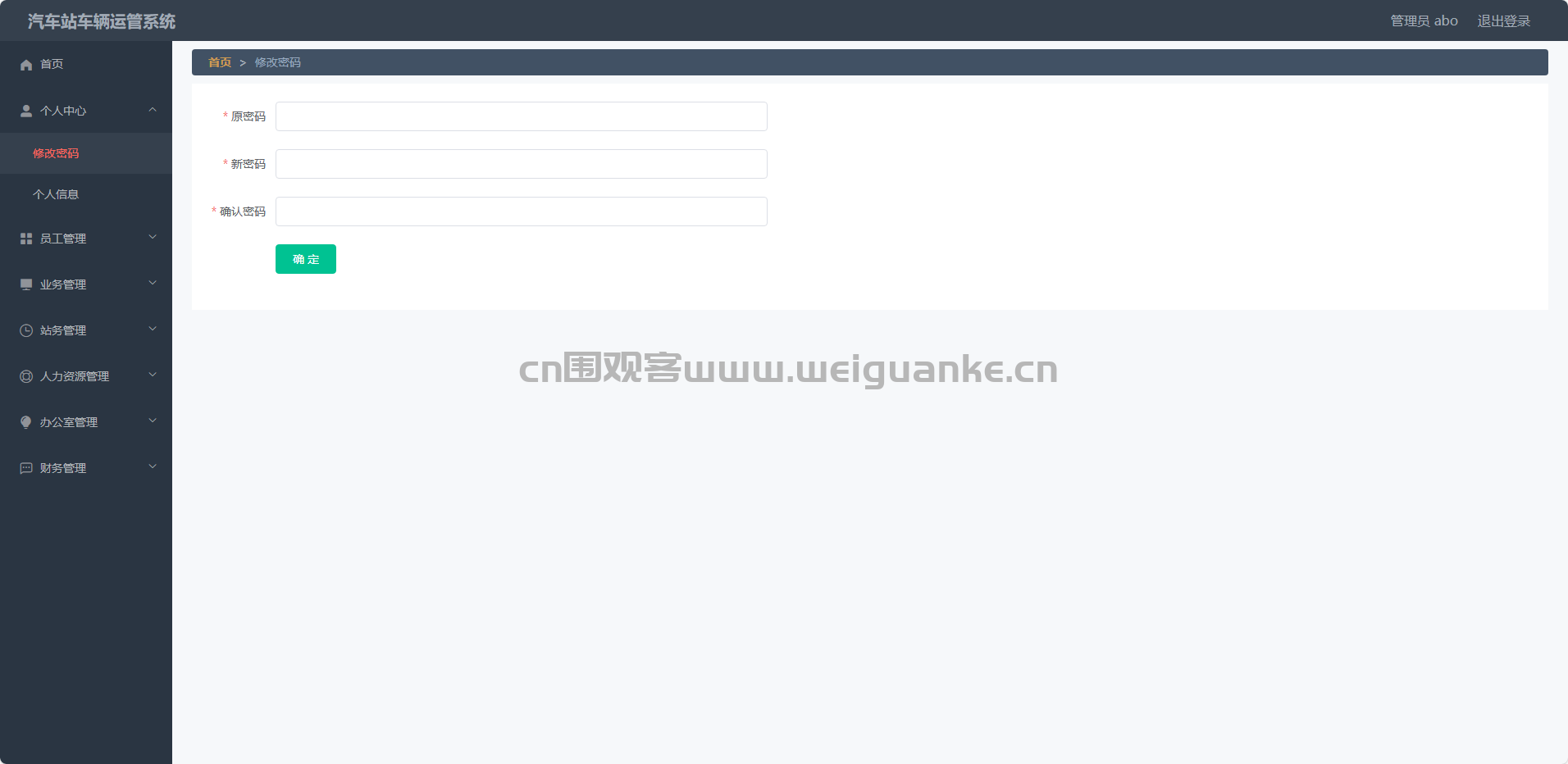 修改密码:管理员可以在此修改自己的登录密码,确保账户安全。
