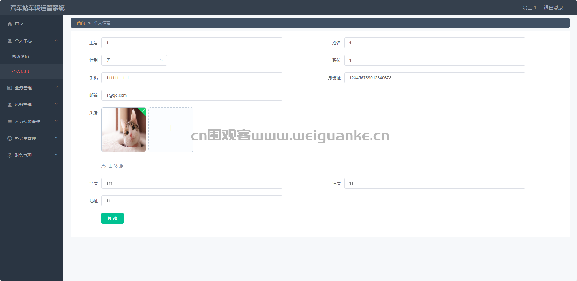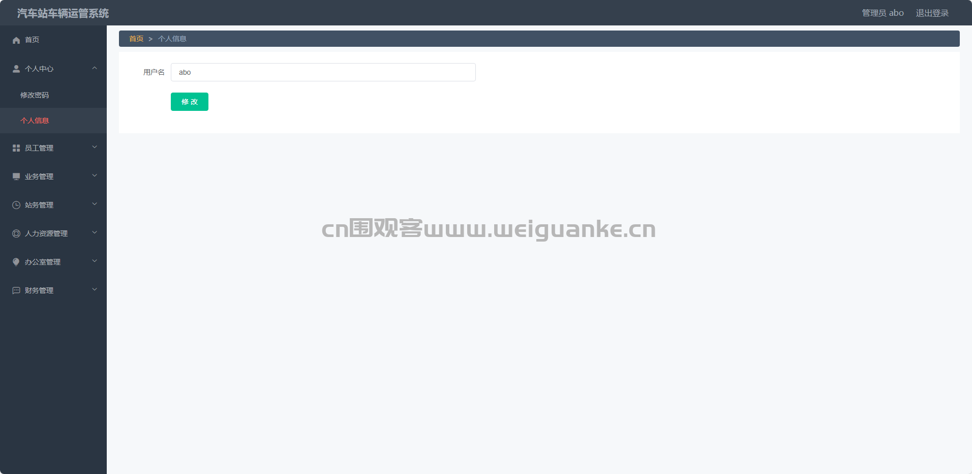 个人信息:管理员可以查看和编辑自己的个人信息,如姓名、联系方式、职位等。