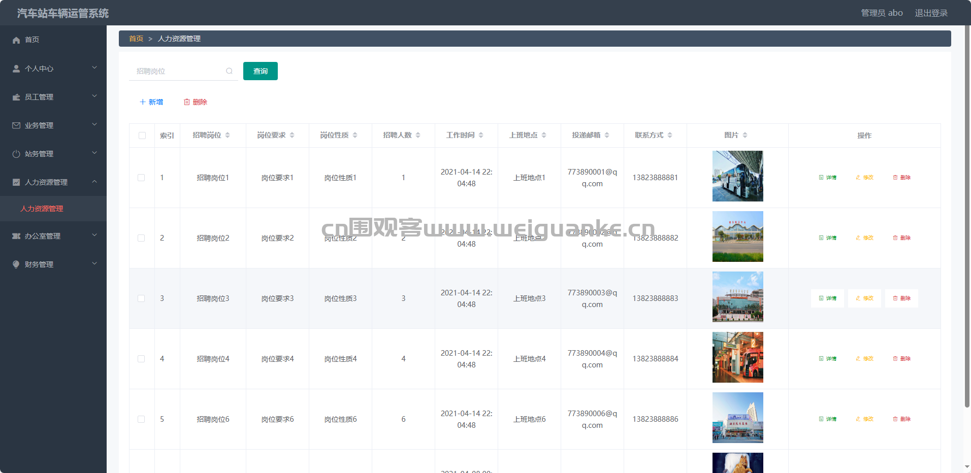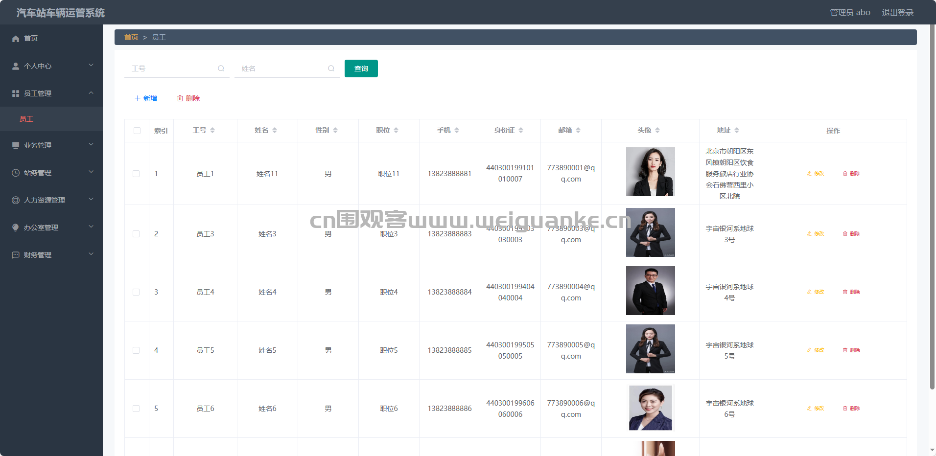 管理员可以对员工进行管理,包括员工的增删改查操作。可以查看员工的详细信息,如个人信息、工作情况等;也可以对员工进行岗位调整、权限分配等操作。