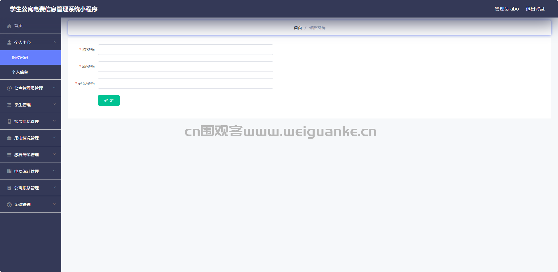 个人中心:修改密码:管理员可随时修改登录密码,保障账户安全。个人信息:查看和修改管理员个人基本信息。
