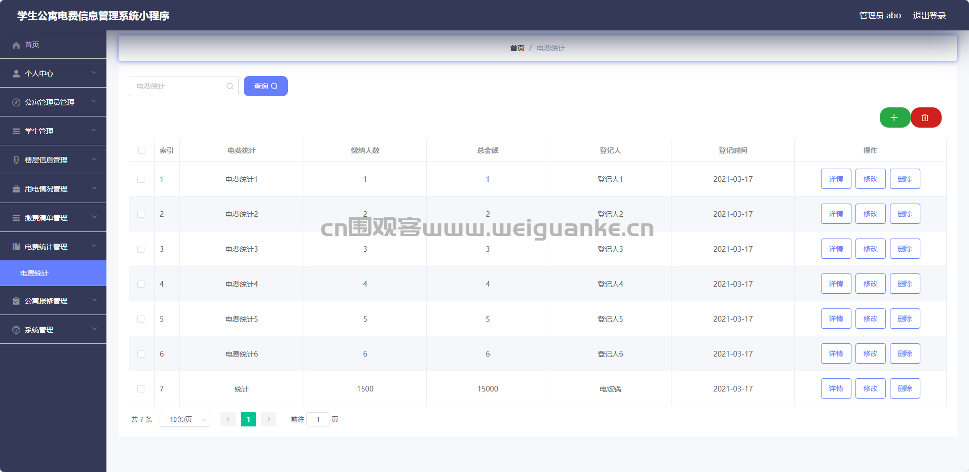 缴费清单:查看本公寓内学生的缴费记录,统计缴费情况。