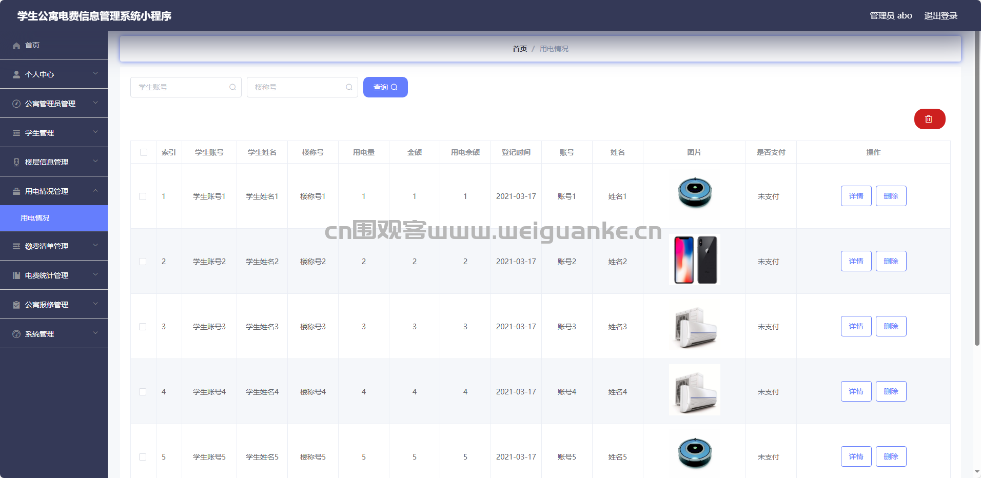 用电情况管理:查看全校各宿舍的用电情况,进行用电数据的统计分析。设置用电预警阈值,当宿舍用电量超过阈值时自动提醒。