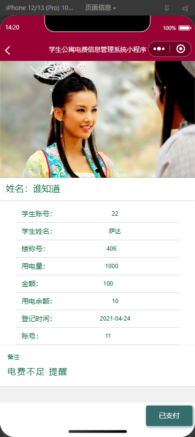 基于ssm + vue +微信小程序的学生公寓电费信息管理系统