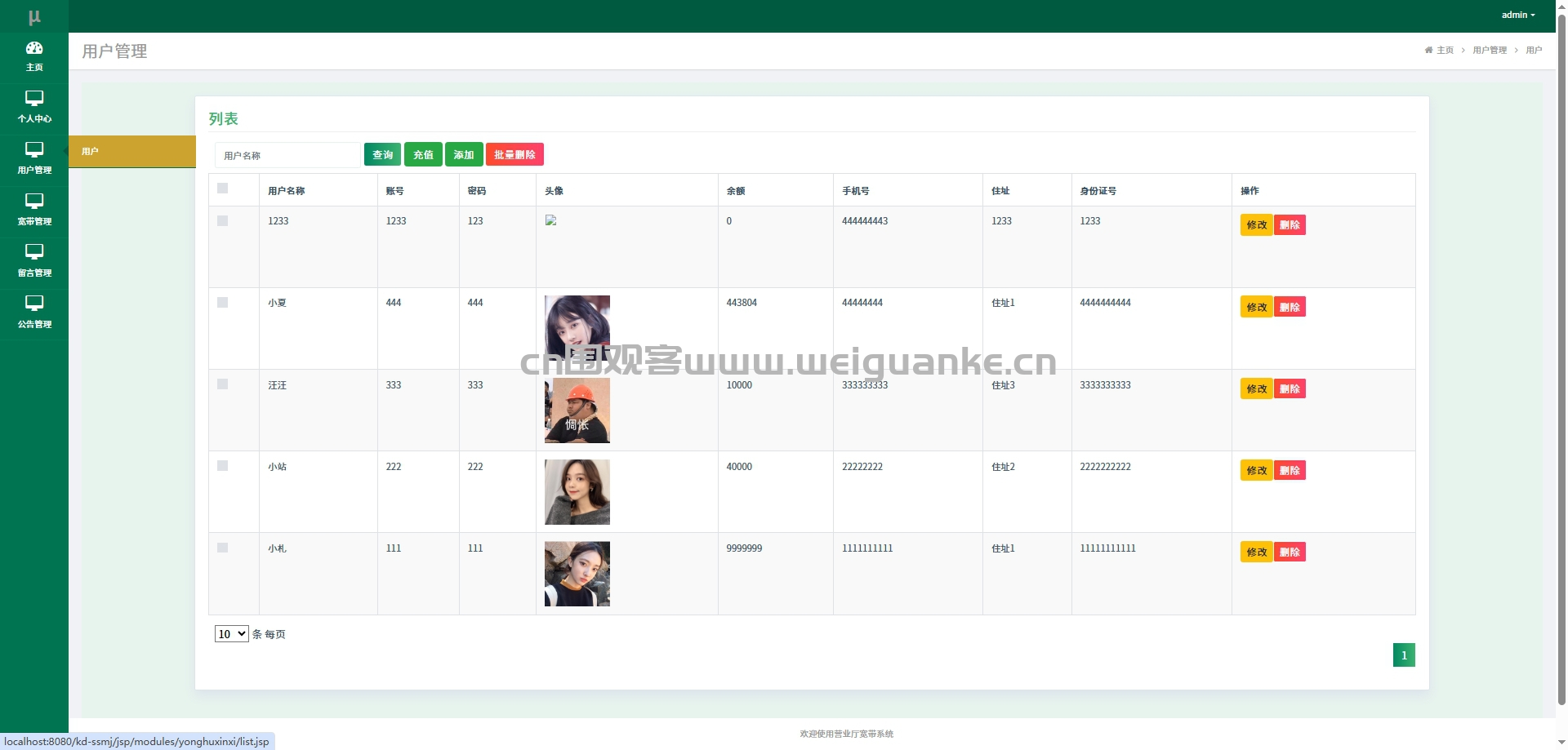 管理员对系统用户进行增删改查操作