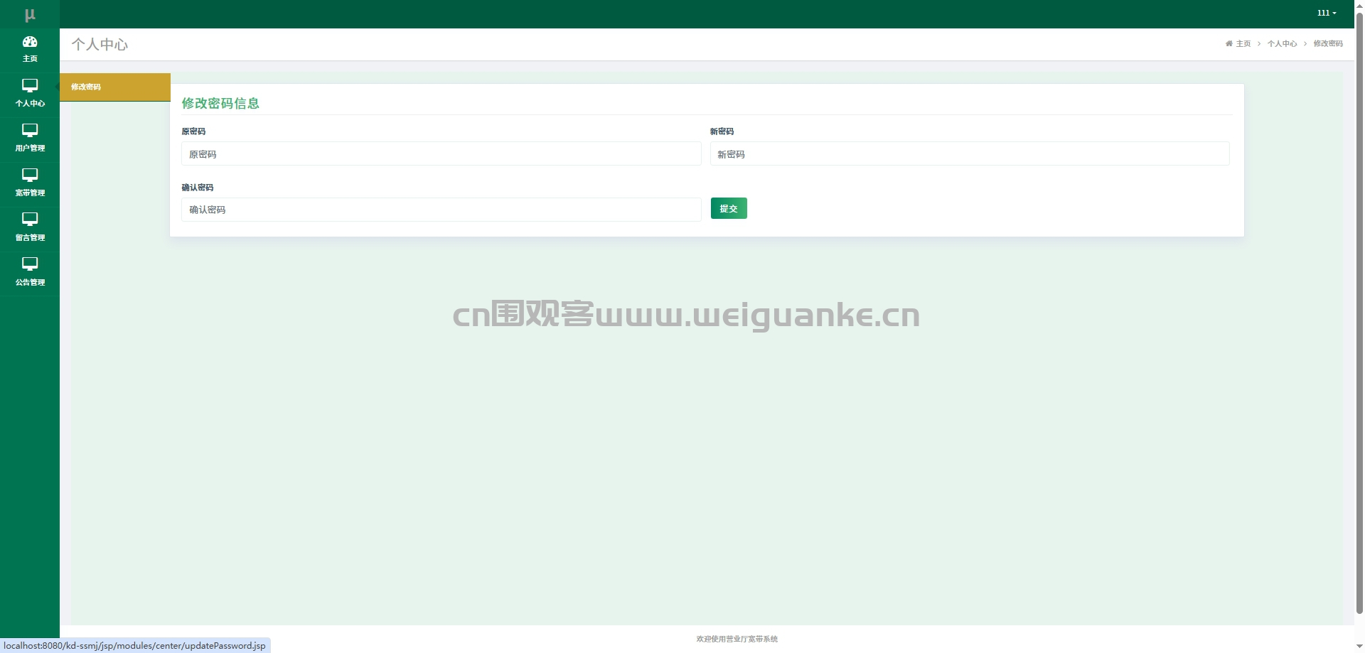 修改密码:允许用户修改当前登录账户的密码