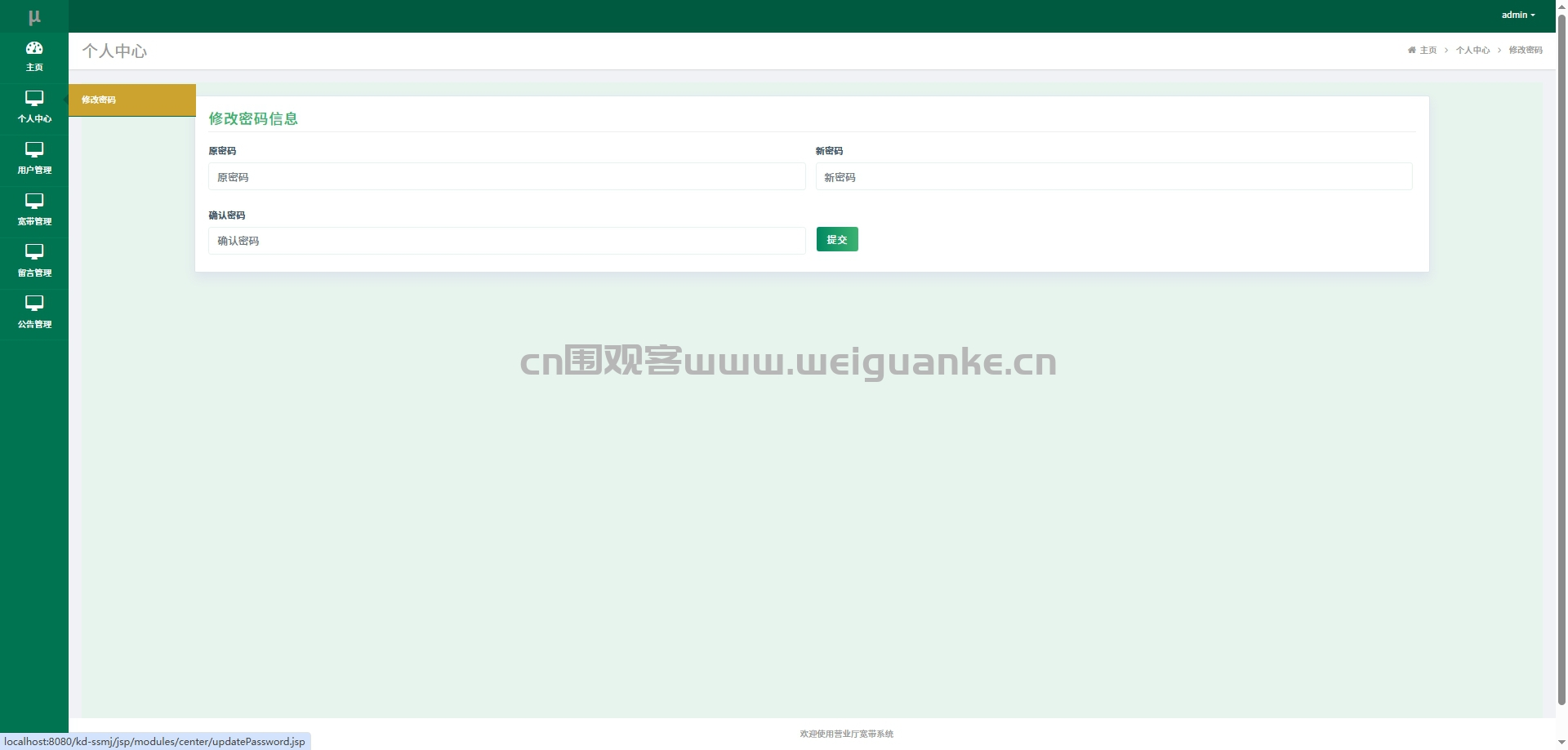 修改密码:修改管理员账户密码