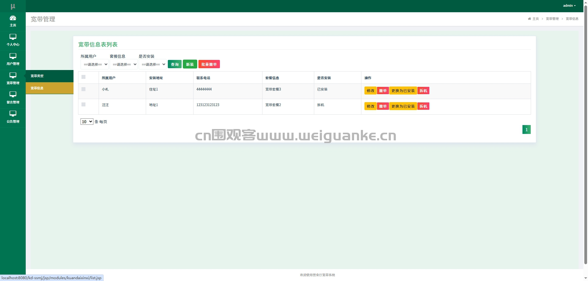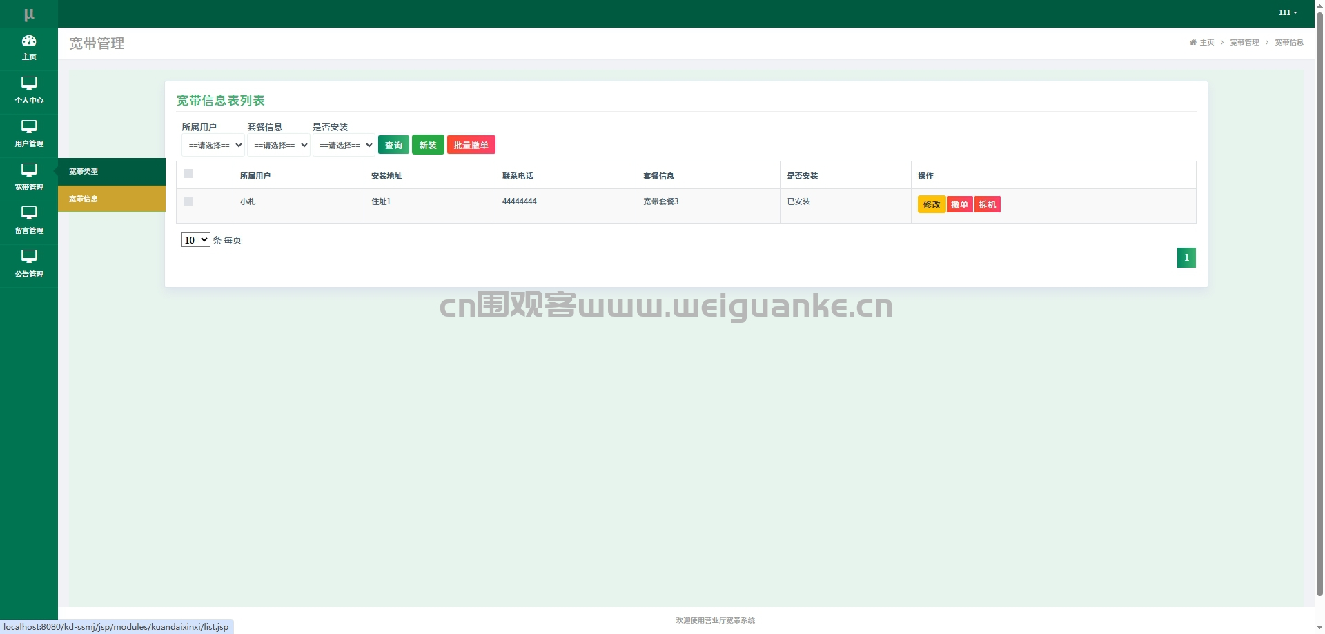 宽带信息:管理用户宽带订单