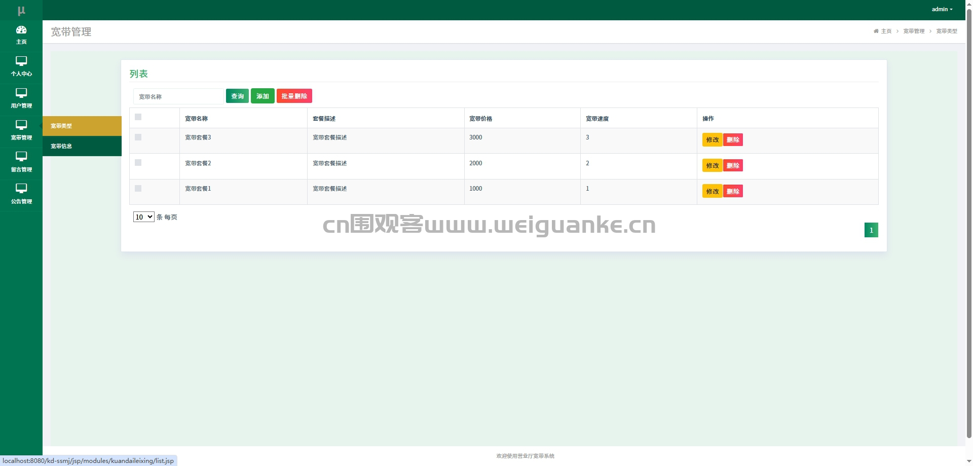宽带类型:添加、编辑或下架宽带套餐类型